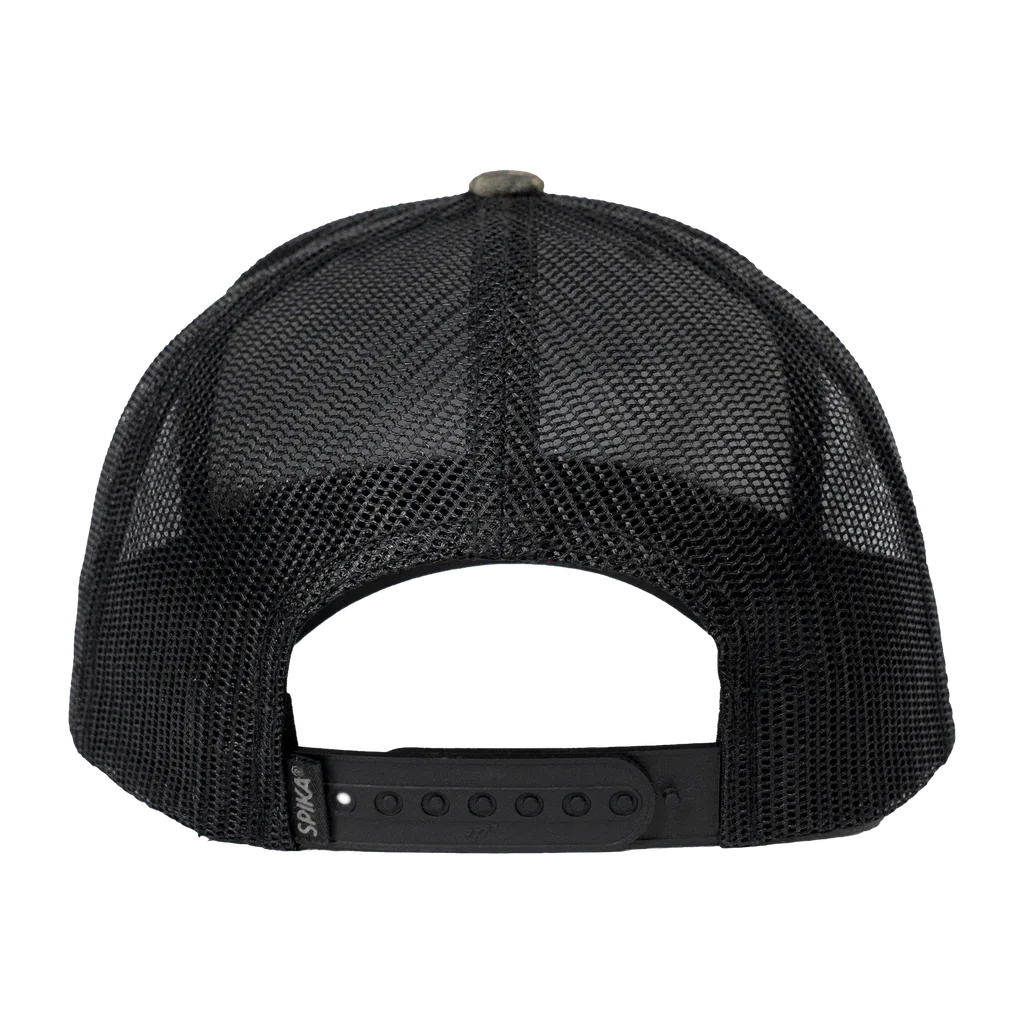 Perfect for everyday wear, the Spika Trucker Cap – Mountain combines comfort and classic outdoor style. Featuring a Biarri camo front panel and brim with a black mesh back for breathability, it’s a go-to cap that lives on your head and rests on the dash. The front patch sports the SPIKA name and the mountains we all hold dear and represents the outdoors lifestyle wherever you take it.