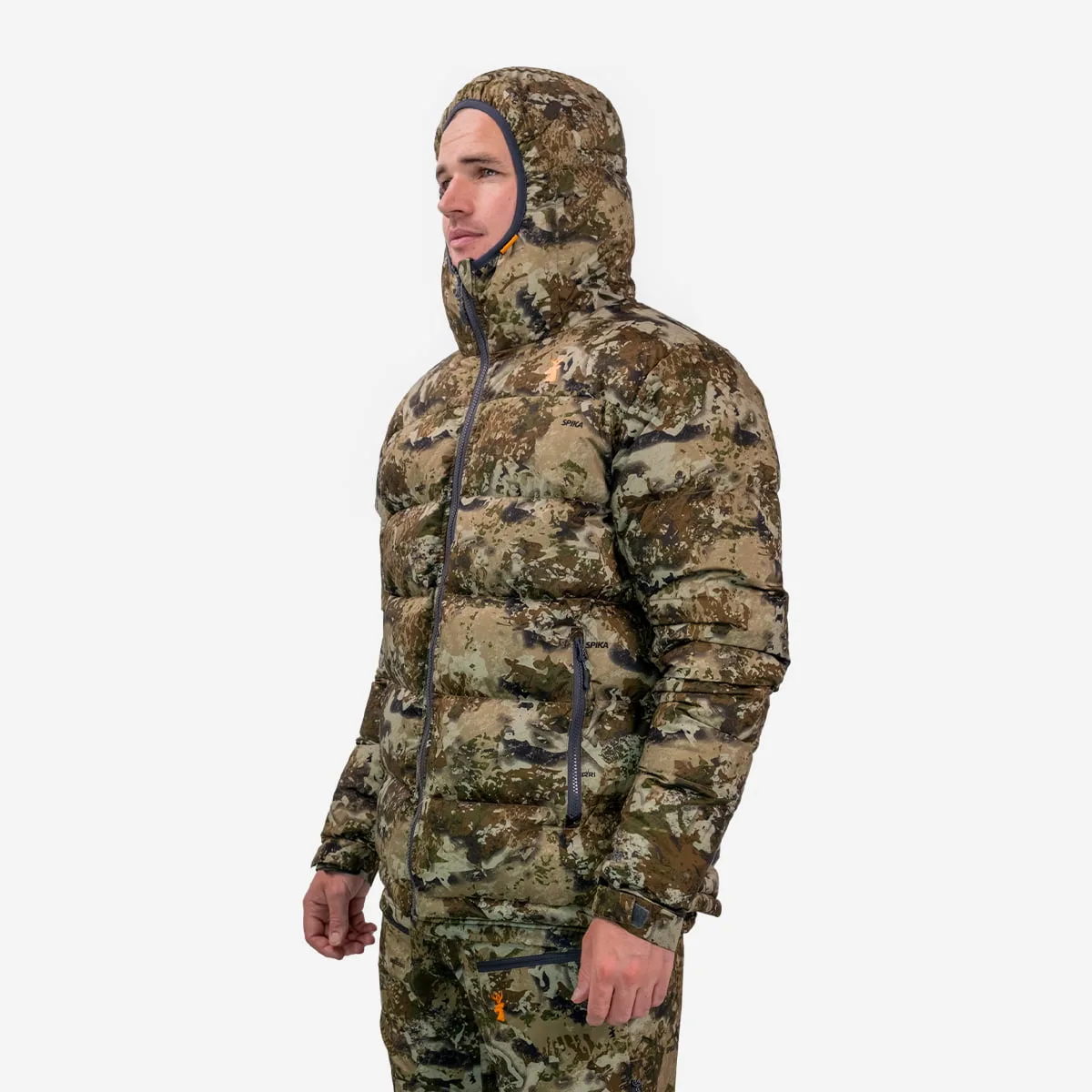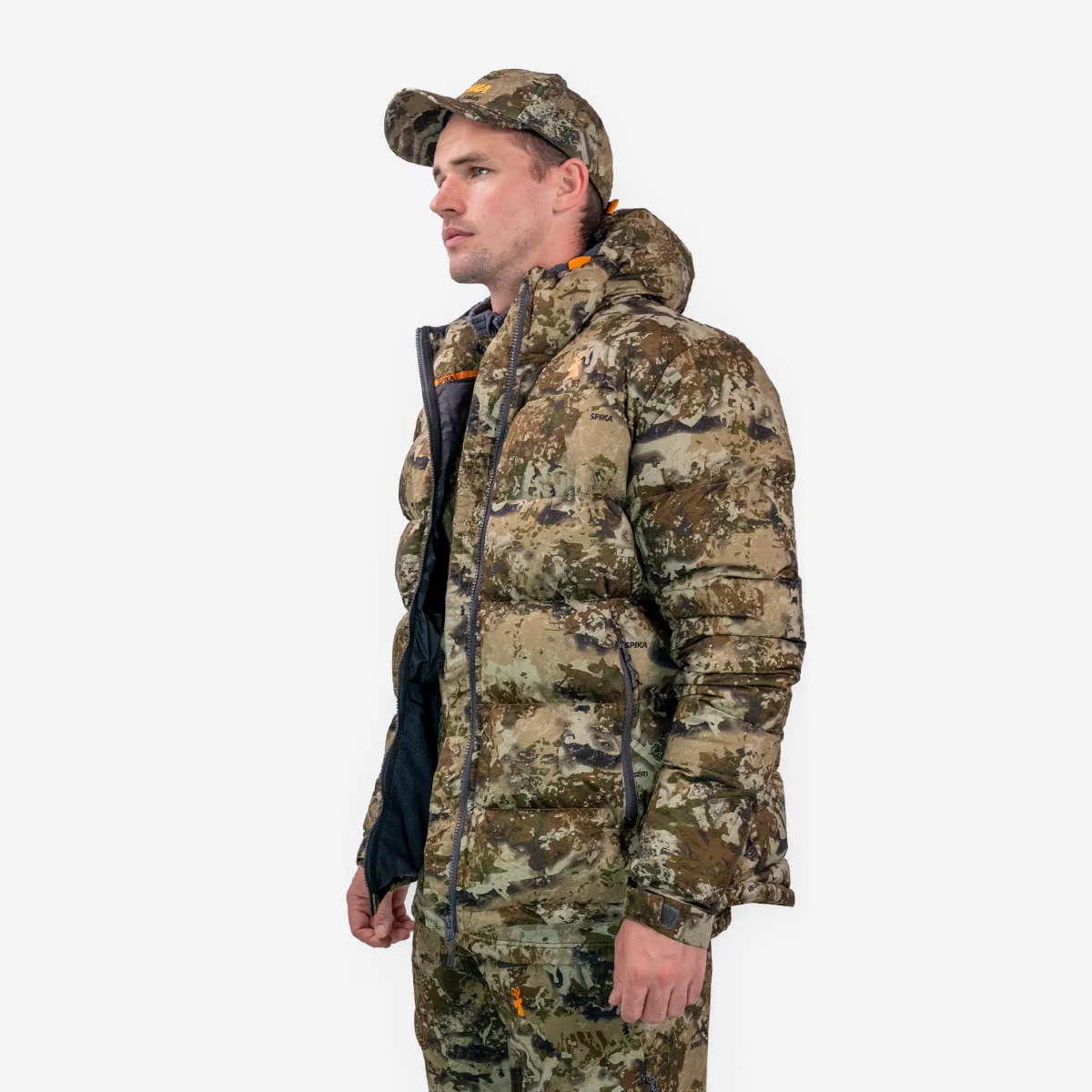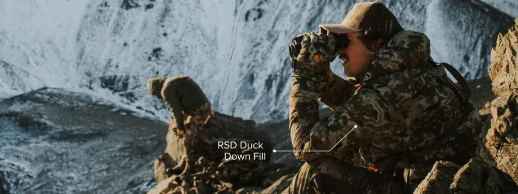 Heat insulating layers like the Spika Terra Puffer Jacket are the cold weather insulation layer, providing maximum warmth from extreme cold. Heat insulating layers retain body heat by storing warm air between the down baffles, while still remaining packable and light weight. If you get too hot, simply unzip the front zipper to dump heat if the jacket is doing its job too well. For cold weather conditions while glassing or those chilly mornings at the campsite the Terra puffer will keep you toasty.