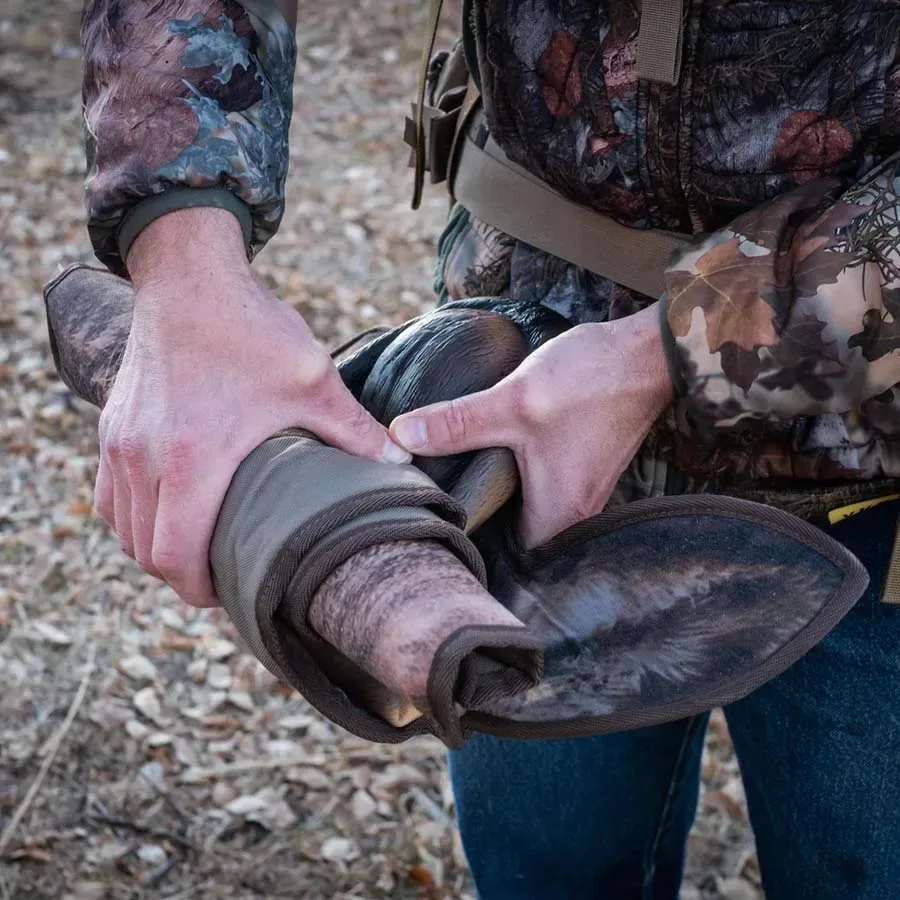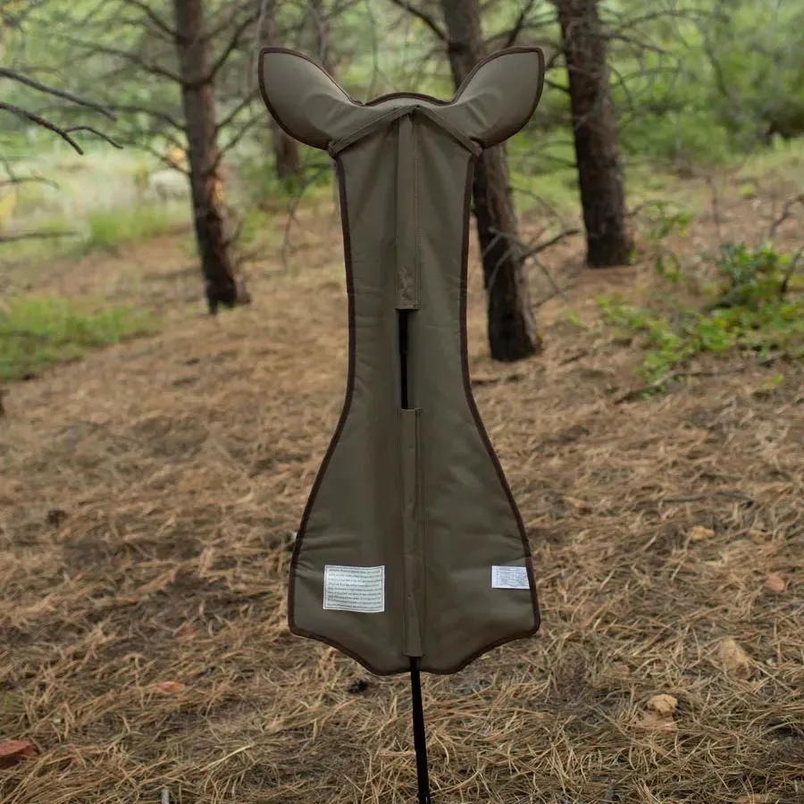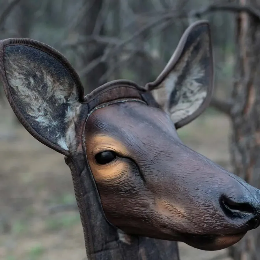 The 3-dimensional face and ears and non-see-through design are what sets us apart.  The face is flexible enough to pack up and the ability to add movement to this thing giving it some life is a game-changer in decoys.  Where most decoys just sit there this one is made to either stake to the ground or to move around—a must-have for hunting with a partner or being a guide.