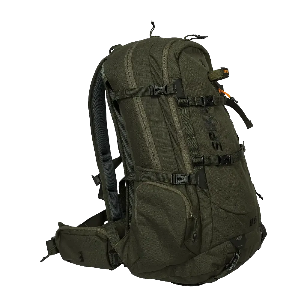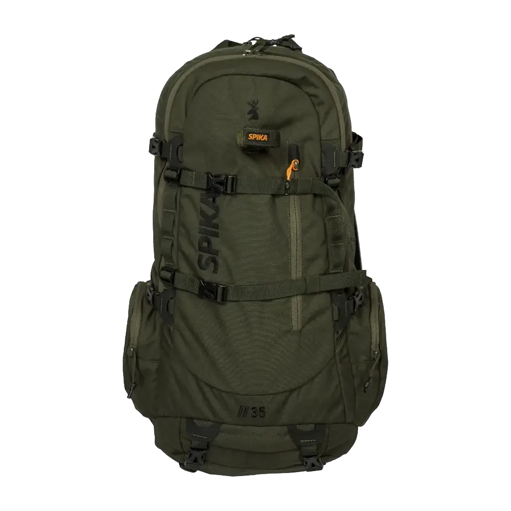 The Spika Drover II 35L Pro Pack is your ideal companion for one-day adventures. Be it hunting, fishing, hiking, or any outdoor adventure, the Pro Pack will allow you ample storage and configuration options to suit your needs. Designed for durability and functionality, the Pro Pack has 2 main large storage zones with 2-way zippers, a front quick-access pocket marked with an orange zip toggle, and side pockets. This gives you plenty of ways to choose where to store all your gear, from additional clothing layers, camera equipment, optics, first-aid, food, water, and other accessories.